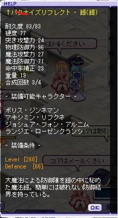 フレの方と装備の話になってサンスル装備にしたほうがいいかな?と聞いてみたら、どっちみちこのキャラくらいしかしないだろーという結論になったので、なら上位の装備のほうがいいんじゃない?ってことになったのでフリマ見に行ってお買い上げしました。