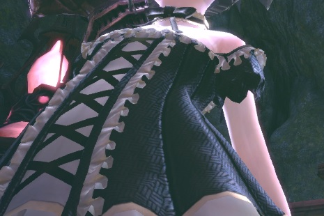 ぱっと見、ただの黒のベビードール風のよくあるワンピ…っていうかもうこれ透け素材だったらランジェリーじゃないっすか?って思うデザインですけど。大人のコスプレ屋さんとか行けば売ってそうだなーwwとか思うんだけど、よく見たら折の柄とか入ってるし、少し厚手の生地の様な質感になってる。