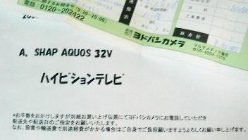 目玉商品の液晶テレビ、AQUOSの32型を当ててしまったwwwwwww