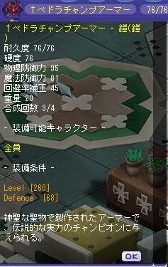 フレの方と装備の話になってサンスル装備にしたほうがいいかな?と聞いてみたら、どっちみちこのキャラくらいしかしないだろーという結論になったので、なら上位の装備のほうがいいんじゃない?ってことになったのでフリマ見に行ってお買い上げしました。