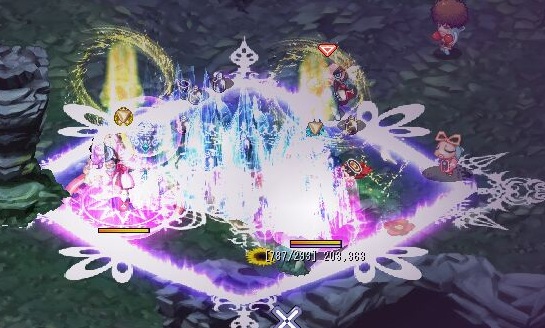 右のPTメンバーは陣に入ってるので回復してます。