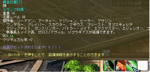 強化してランクアップさせればGランクだとI9にもなるしね。過剰精錬で7くらいまで上げて結晶さすといい感じになりそうな一品。。。