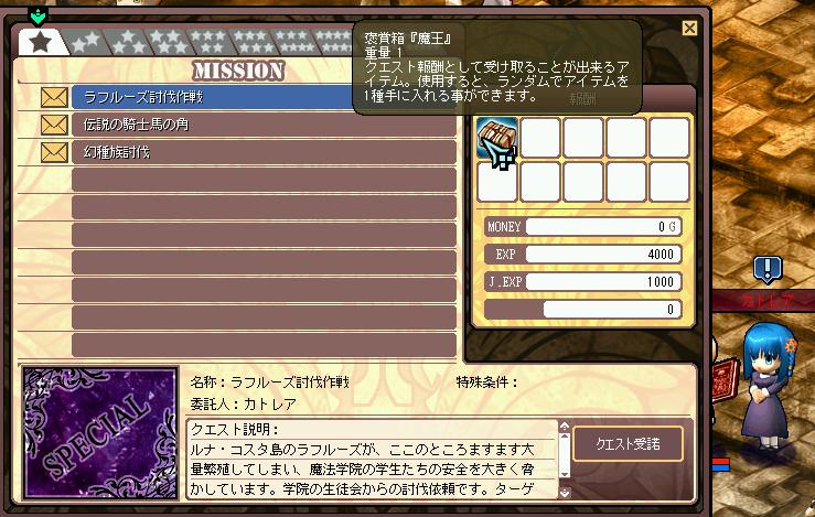 したらばの新アイテム報告スレも立ってるんで、どのクエからどれがでるかはそこを参考にしたほうがいいかとbb