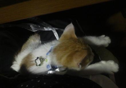 ってなわけでのっぺり人の膝の上で寝てます。